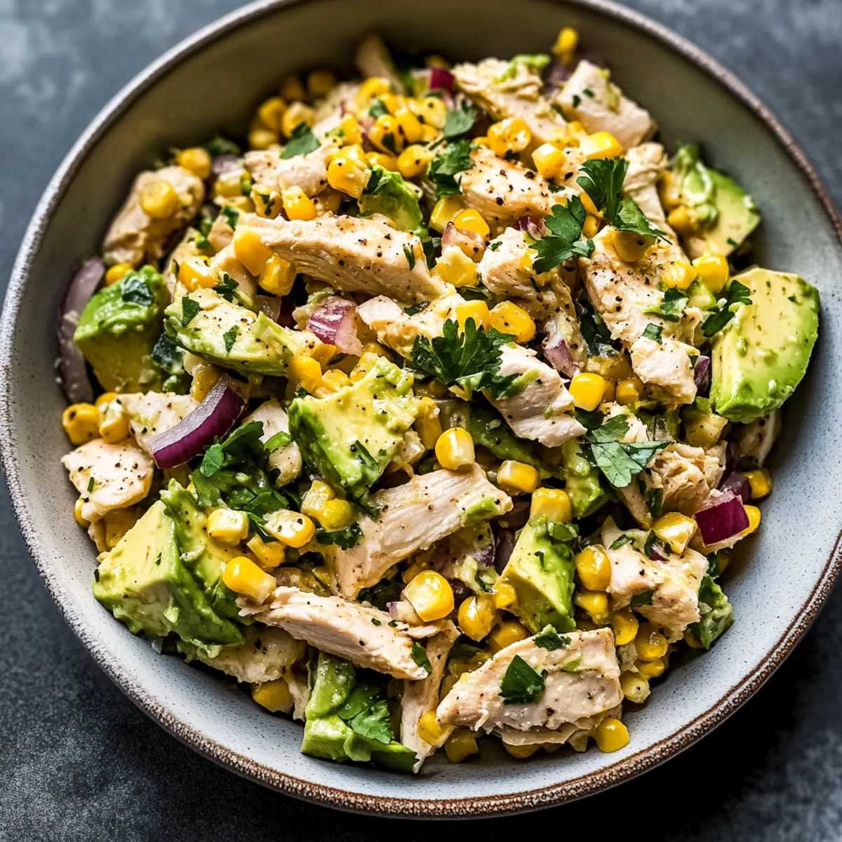 Make-Ahead: Prepare the salad base—chicken, corn, onion, and dressing—and store in the fridge for up to 24 hours. Add avocado and lime juice just before serving to maintain freshness.