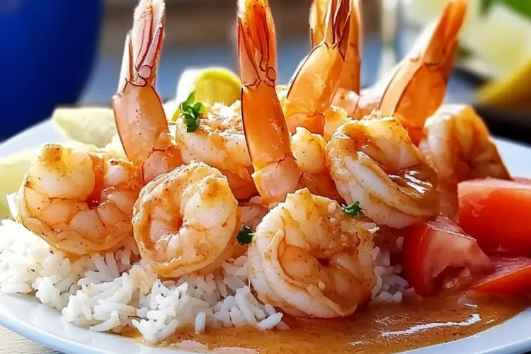 Once the shrimp is baked, it’s time to serve your Bubba Gump Shrimp New Orleans! On each plate, place a generous scoop of cooked rice, creating a delightful base. Pour the creamy sauce around the rice, then top with the baked shrimp, diced tomatoes, and fresh onion for a bright garnish.