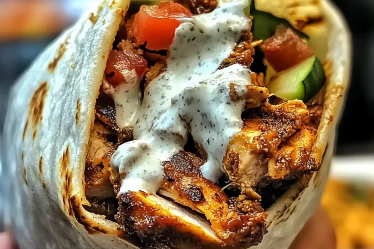Indulge in this Chicken Shawarma recipe, bursting with spices and served with a creamy garlic sauce, perfect for dinner.