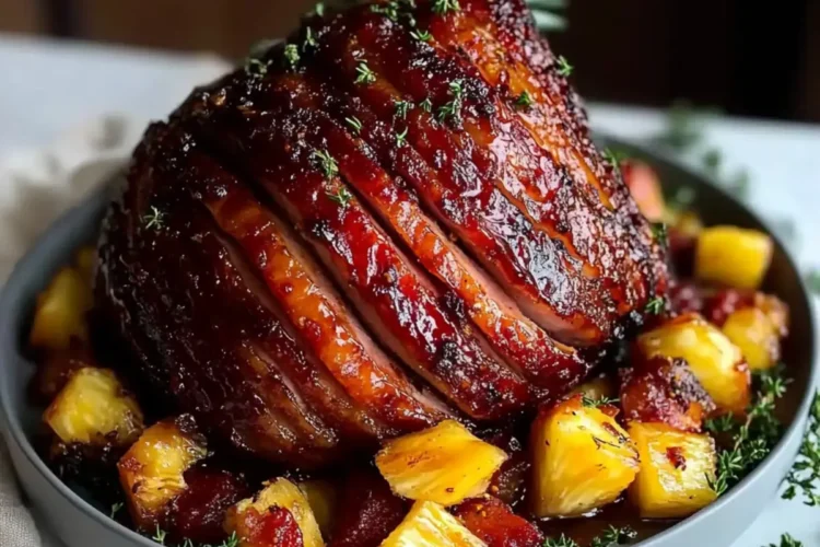 This Chipotle Pineapple Glazed Ham combines smoky chipotle and sweet pineapple for a festive and flavorful centerpiece.