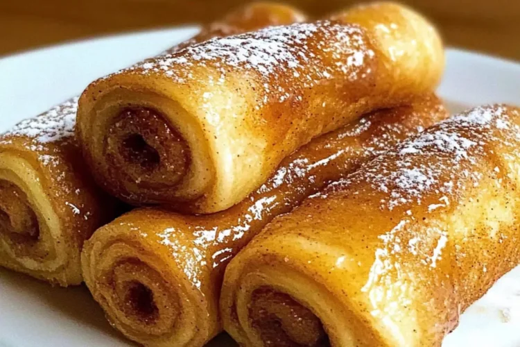 Once your roll-ups are beautifully browned and cooked through, remove them from the skillet and place them on a plate. You can dust them with powdered sugar or drizzle maple syrup for an extra touch of sweetness. These warm, comforting treats are ready to be enjoyed right away!