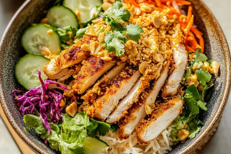 Irresistible Flavor Fusion: This salad bursts with flavors from the creamy peanut dressing, savory chicken, and crunchy veggies, making each bite a delicious experience.