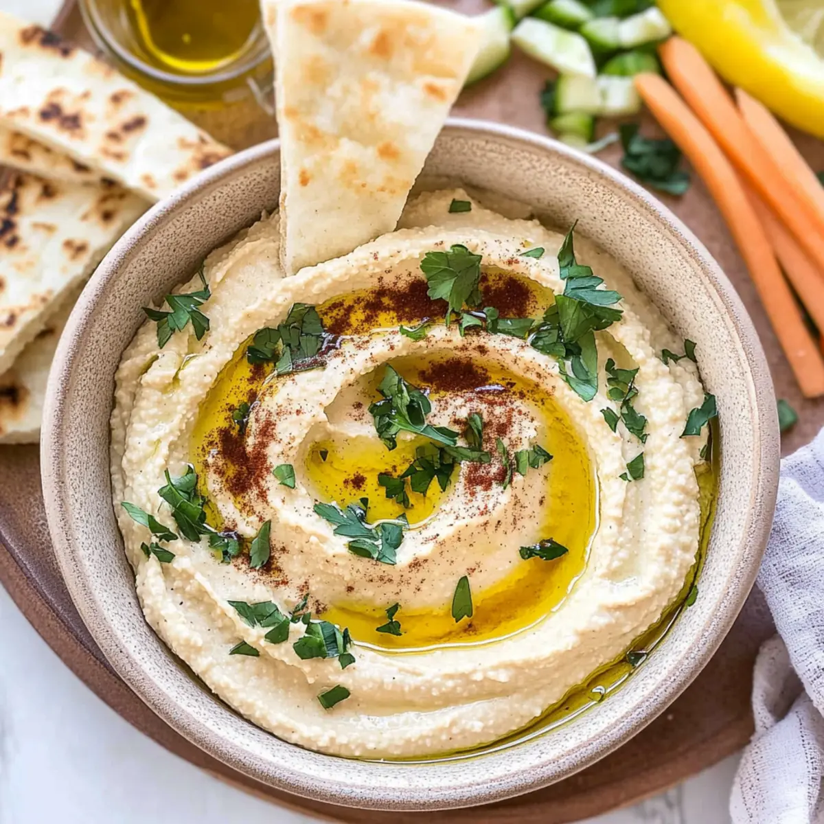 Crispy Pita Chips: These crunchy delights add a satisfying texture and flavor balance, making them the perfect vessel for your hummus.