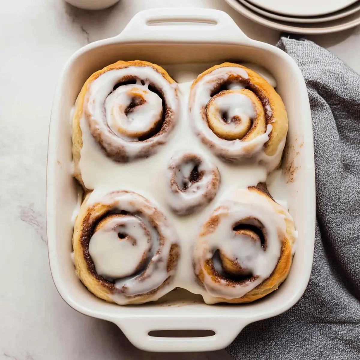 Heavy Cream (1/2 cup) – Added to the bottom of the baking pan to keep rolls soft and gooey; milk works in a pinch but will result in a drier roll.