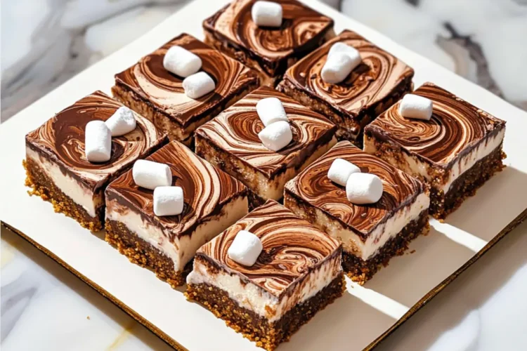 When ready to serve, dust the top of the chilled bars with cocoa powder and, if desired, sprinkle mini marshmallows on top for that classic hot chocolate touch. Slice the bars using a hot knife for clean edges, and delight in each chocolatey, creamy bite!