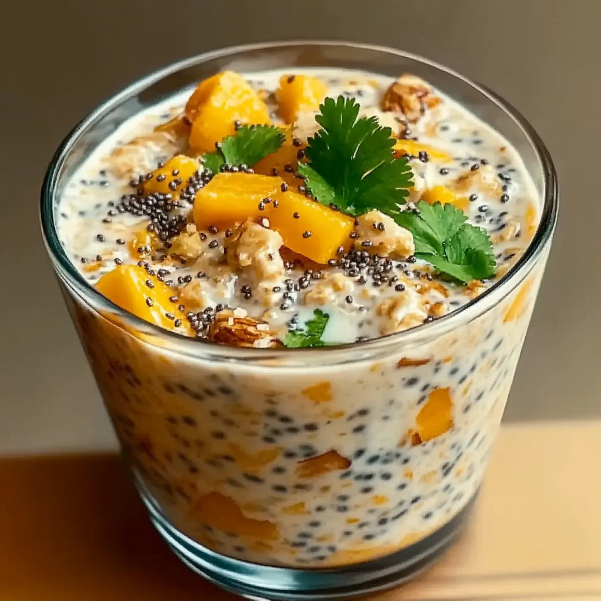 Once mixed, cover the bowl or jar with a lid or plastic wrap. Place it in the refrigerator and let the mixture chill for at least 6 hours or overnight. This soaking time allows the rolled oats and chia seeds to absorb the liquid, resulting in a creamy, thick consistency reminiscent of traditional Nourishing Indian Overnight Oats.