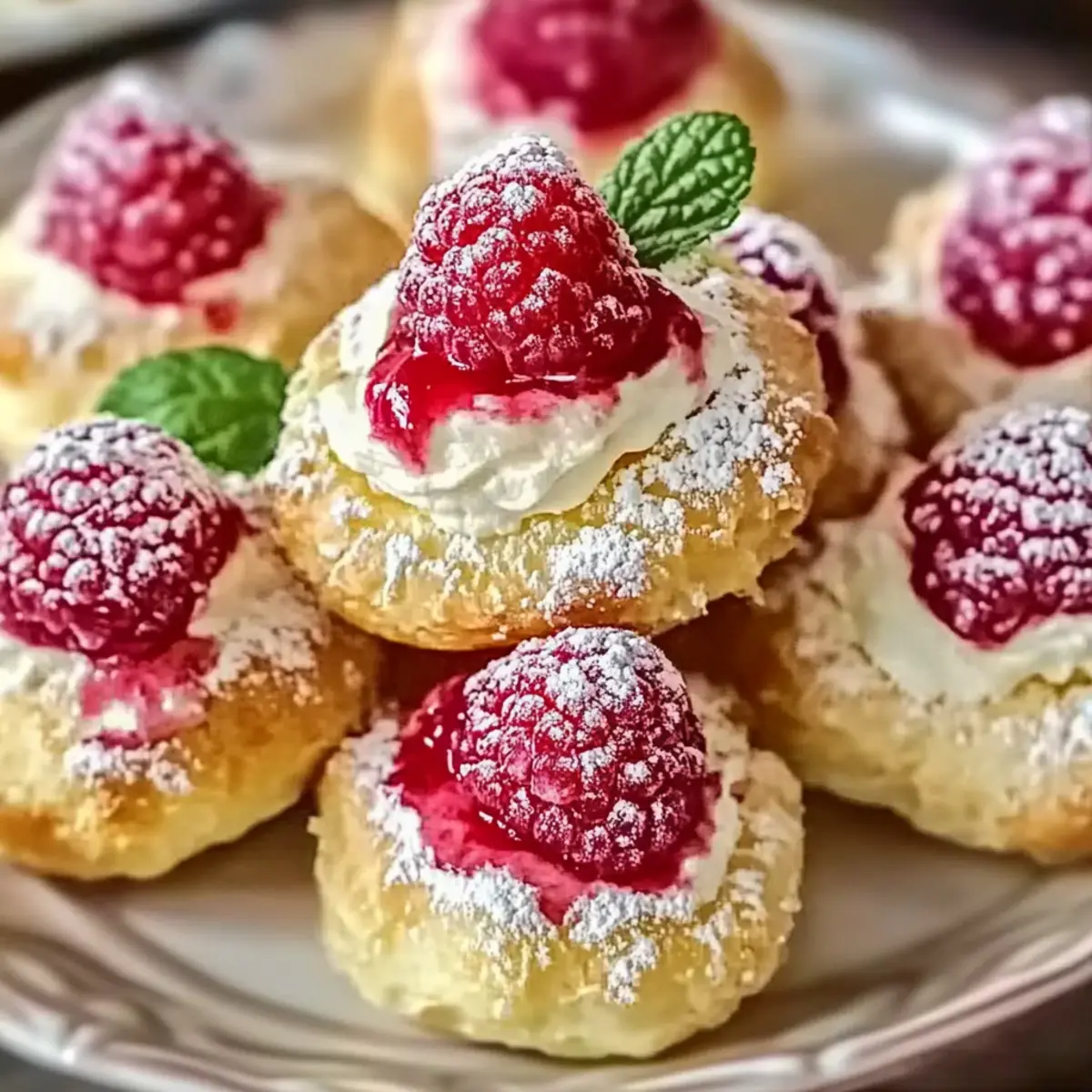 - Let them cool slightly, then garnish with fresh raspberries and powdered sugar.