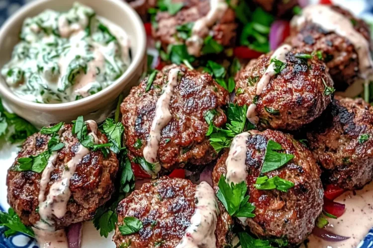 Experience the irresistible flavors of Spicy Beef Armenian Kefta with creamy tahini and tangy tzatziki, perfect for dinner gatherings.