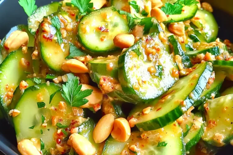 - Transfer drained cucumbers to a clean mixing bowl, add in peanuts and parsley, drizzle dressing over and toss gently to combine.