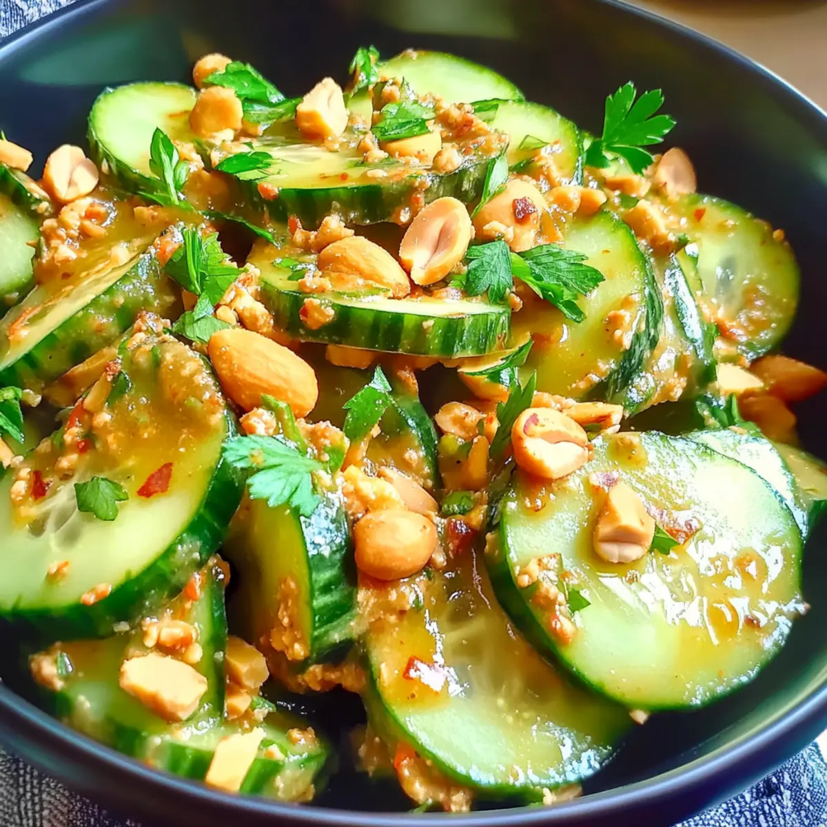 • Mix Gently: When combining the ingredients, toss gently to coat the cucumbers without bruising them—this keeps each bite fresh and inviting in your Spicy Peanut Cucumber Salad.