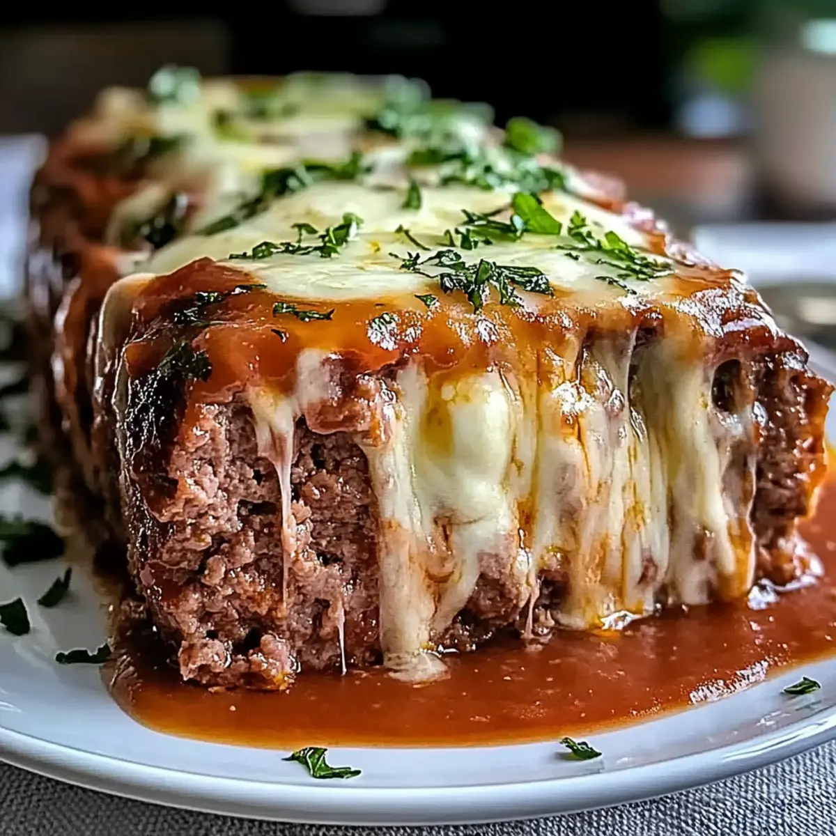 Slice the meatloaf and serve with your favorite sides, using any reserved glaze as a condiment. The first cut will reveal the ooey-gooey mozzarella center, making it a centerpiece for cozy dinners. Embrace the joy of sharing this delightful dish with family and watch as it becomes an instant favorite!