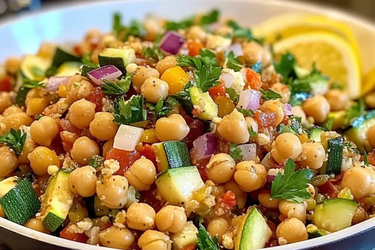 A quick and nutritious Zucchini and Chickpea Skillet, packed with protein and flavor.